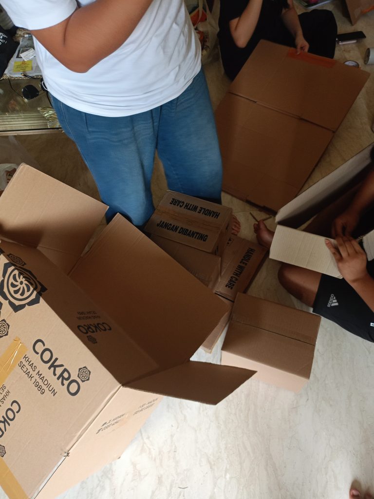 Hari ini saya mengerjakan box untuk properti uprak kita. Kita membuat sekitar 6 box