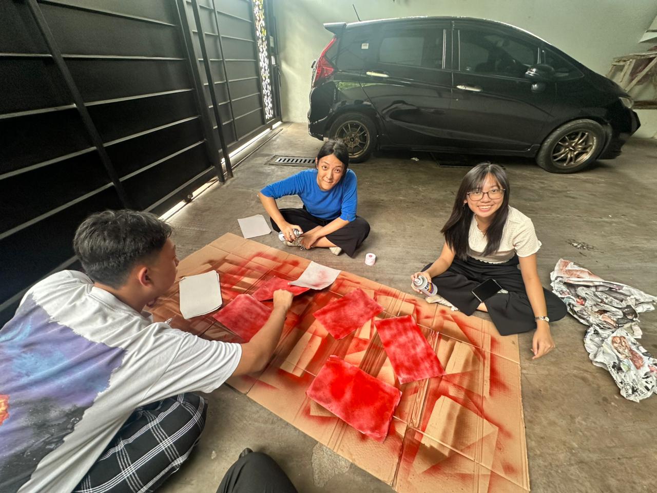 Pada hari ini, saya membantu Sie Dekorasi untuk mempilox kertas-kertas menjadi berwarna merah. Kertas-kertas ini saya bawa pulang untuk digiling menggunakan alat penghancur kertas, lalu akan dimasukkan toples sebagai tembakau untuk properti pedagang. Selain itu, saya juga membantu membuat kertas vintage dengan mengoleskan kopi dan cat berwarna coklat ke kertas-kertas yang semula berwarna putih. Setelah dijemur hingga kering, kertas-kertasnya menjadi berwarna coklat seperti kertas lawas. Pengolesan ini membutuhkan beberapa kali percobaan, karena kami mencoba berbagai cara untuk menentukan cara mana yang paling efektif. Misalnya, awalnya kami menggunakan cat tetapi hanya tipis saja. Setelah kami tunggu hingga kering, ternyata hasilnya kurang memuaskan, sehingga kami mencoba lagi lebih tebal. Namun, sayangnya menurut kami masih kurang terlihat seperti kertas lawas. Karena itu, akhirnya kami menggunakan kopi yang dioleskan dengan kuas berukuran besar.