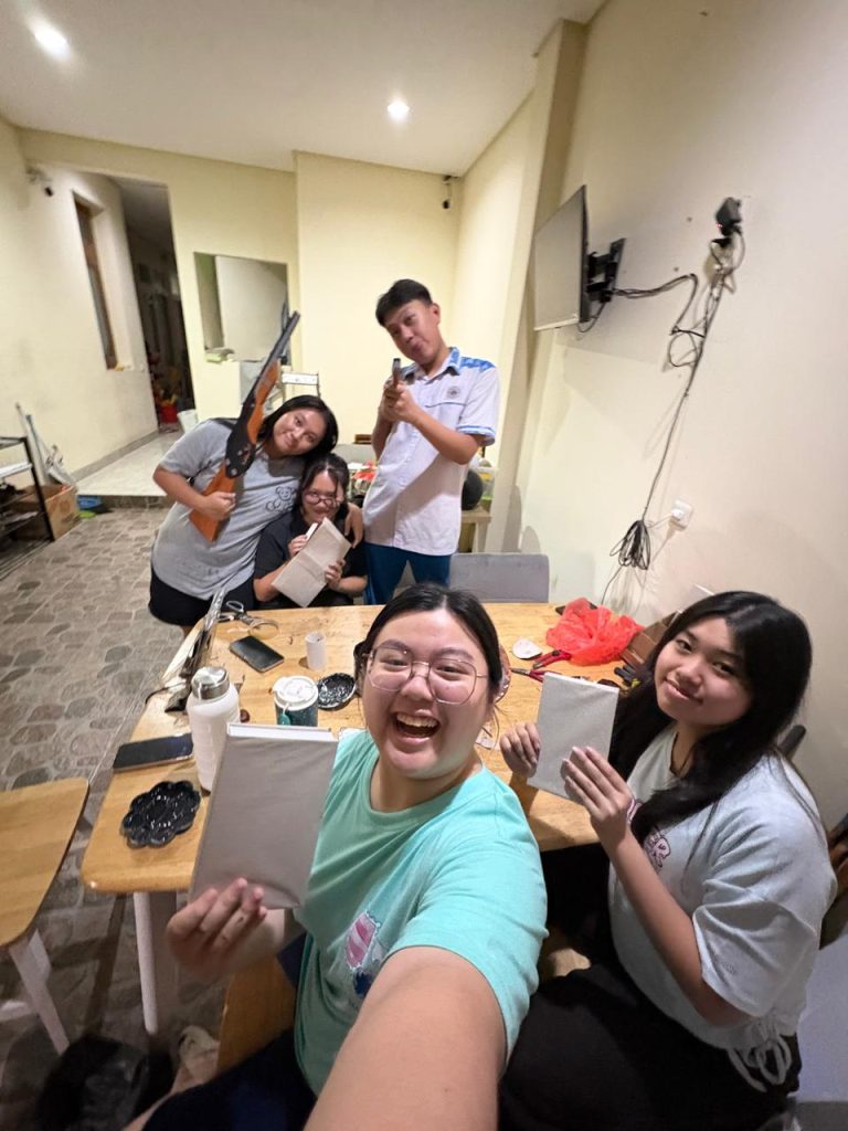 Hari ini, kami tidak hanya berempat seperti biasanya. Kami mendapat bantuan dari anggota sie dekorasi yang lain. Paling tidak, kami mendapat tambahan satu anggota. Hari ini saya bertugas menyampul buku yang baru saja datang untuk kemudian dicat seperti buku zaman dahulu. Memang terlihat mudah, namun saya sendiri mengalami kendala dalam menyampul buku tersebut karena tidak ada sela untuk menyelipkan kertas tersebut sehingga cukup banyak menyita waktu. Namun, pada akhirnya, saya dapat menyelesaikan 4 buku, sementara yang lain melanjutkan mengecat senapan yang belum selesai kemarin. Saya cukup senang karena awalnya saya tidak menyangka saya bisa melakukannya. Senapan yang kami buat juga semakin bagus dengan detail-detail baru yang mendukung.