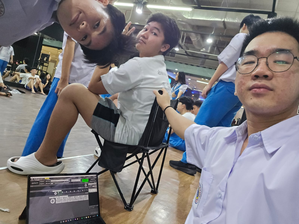 pada hari ini kita sedang latihan di studio di mall marvel, saya menjadi backsound untuk latihan seperti yang bisa dilihat di gambar tersebut. di gambar ini laptop saya menunjukkan soundboard yang mengandung setiap backsound untuk setiap scene