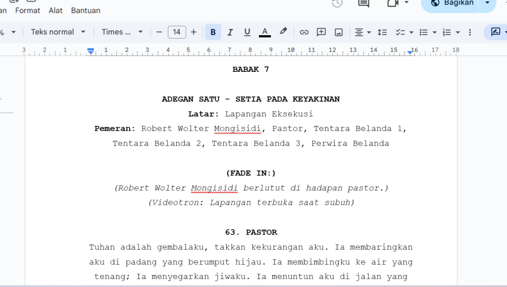 Hari ini saya menyelesaikan script babak 6 dan babak 7, sekaligus mengecek kembali babak yang lain. Awalnya saya sedikit kesulitan membuat kalimat yang baik. Saya kesulitan karena merasa script yang saya buat kurang dalam emosinya. Namun, kendala tesebut dapat saya atasi dengan baik.