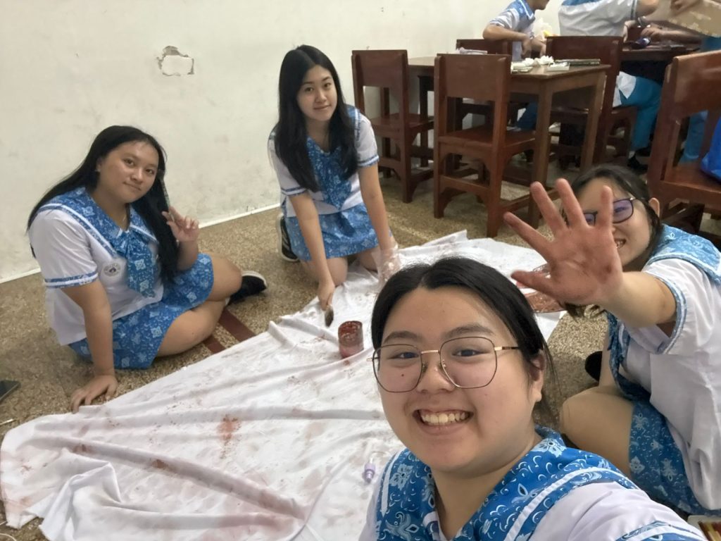 Pada tanggal 8 Januari setelah selesai kegiatan sekolah kami melanjutkan pekerjaan dekor dengan menghias kain polos. Kain tersebut diolah menjadi plakat yang menyerupai plakat demo atau plakat perjuangan pada masa mempertahankan kemerdekaan Indonesia dari penjajah. Proses ini menuntut kepekaan terhadap konteks sejarah agar tulisan dan tampilannya tetap sesuai dengan suasana perjuangan.